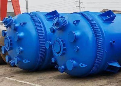 搪瓷反应罐常用于石油化工、橡胶、农药、染料、医药等行业,用以完成磺化、硝化、氢化、烃化、聚合、缩合等工艺过程,以及有机染料和中间体的许多其它工艺过程的反应设备。低压反应釜,一般是指1.6MPa以下的反应釜。由于工艺条件和介质的不同,反应釜的材料选择及结构也不尽相同,但基本组成是相同的,它包括传动装置、传热和搅拌装置、釜体(上盖、筒体、釜底)、工艺接管等。设备的外观尺寸,一般取反应釜有效高度Hgz/反应釜内径Di=1.0~1.2,如果Hgz/Di>1.5,则需增设桨叶数。桨叶直径di通常取1/3/Di,上、下桨叶的间距应略大于桨径。在设备的结构上设置必要的传热和搅拌装置是为了强化反应过程。反应釜体普遍采用钢制(或衬里)、铸铁或搪玻璃。